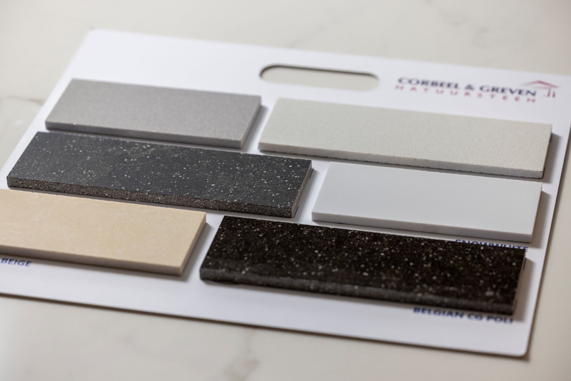 Marmercomposiet bestaat uit 96% marmergranulaat, dat is gebonden met een hoogwaardige kunsthars. Het resultaat is een materiaal met een uniforme structuur, waarin de granulaatkorrels gelijkmatig verspreid zijn.