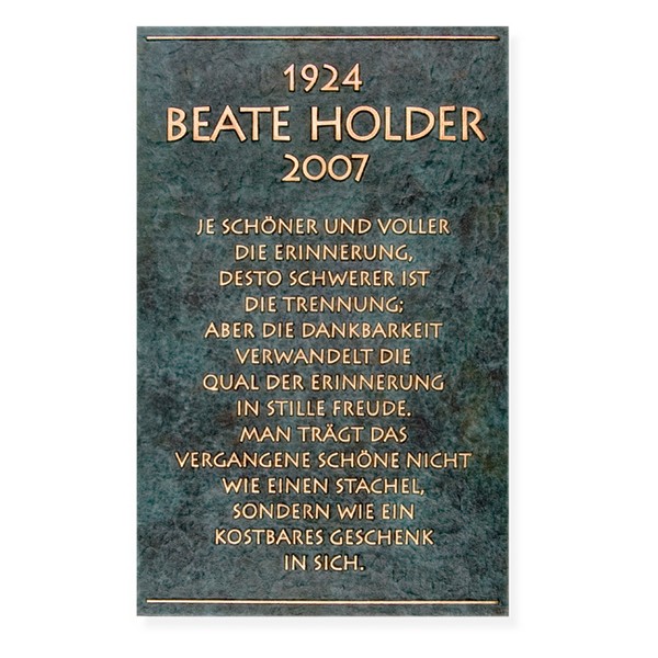 Ook kan een bronzen tekstplaat gepatineerd worden zodat de kleur ervan anders wordt. Er zijn diverse patina’s mogelijk, van groen, blauw tot een rustieke oude uitstraling.