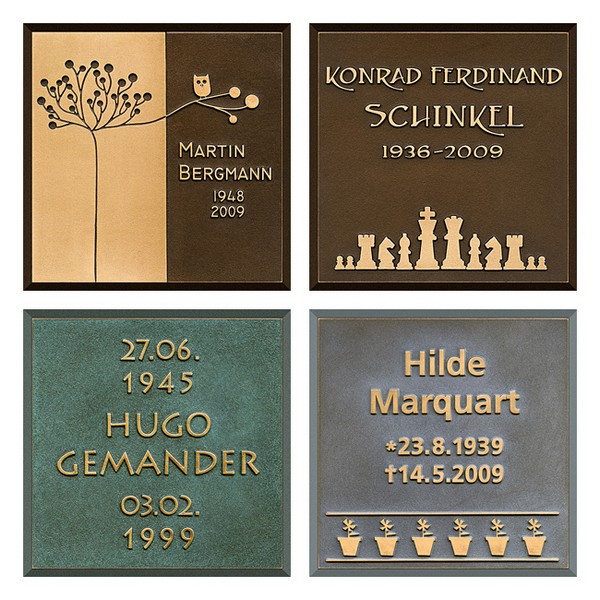 Een bronzen plaatje is in elk gewenst formaat te verkrijgen. Het formaat is afhankelijk van de gewenste tekst en de vorm van de steen. Soms komt een smalle, langwerpige tekstplaat beter uit dan een rechthoekige tekstplaat. De tekst wordt in een zelf uit te zoeken lettertype op het plaatje gemaakt. Er kan ook een afbeelding bijgeplaatst worden.